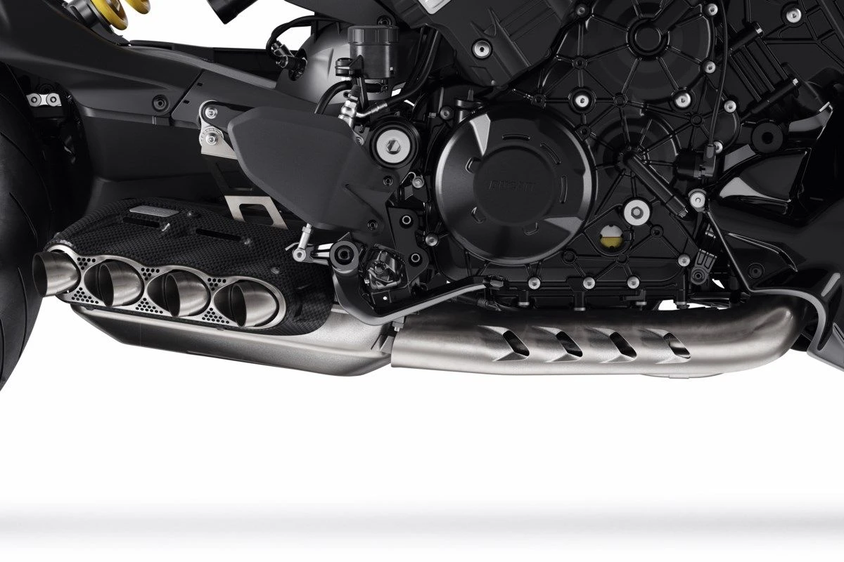 De combinatie van de kenmerkende stijl van Ducati en de productie-expertise van Akrapovic resulteerde in dit accessoire dat is ontworpen om het sportieve karakter van de Diavel V4 te ontketenen. De titanium demper en carbon afdekking garanderen een uitstekende weerstand en maximale prestaties. Dankzij de meegeleverde 4 dB killers kan dit accessoire op het circuit worden gebruikt, terwijl het voldoet aan de wettelijke geluidsemissielimieten. De verlichting van dit onderdeel en de toename van het vermogen verhogen het rijplezier verder, terwijl het uitgesproken racedesign de achterkant van de motor verfraait met een extra gedurfde touch.