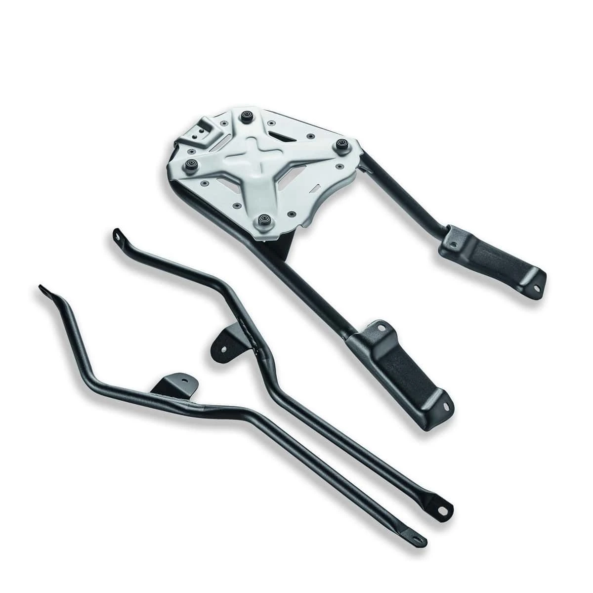 Accessoire dat het mogelijk maakt om het draagvermogen van de motorfiets te vergroten, handig voor iedereen die langere reizen wil maken en voor wie de essentials niet genoeg zijn. De afmetingen en afwerkingen zorgen ervoor dat deze perfect past bij de vorm van de fiets, zonder de esthetiek aan te tasten.