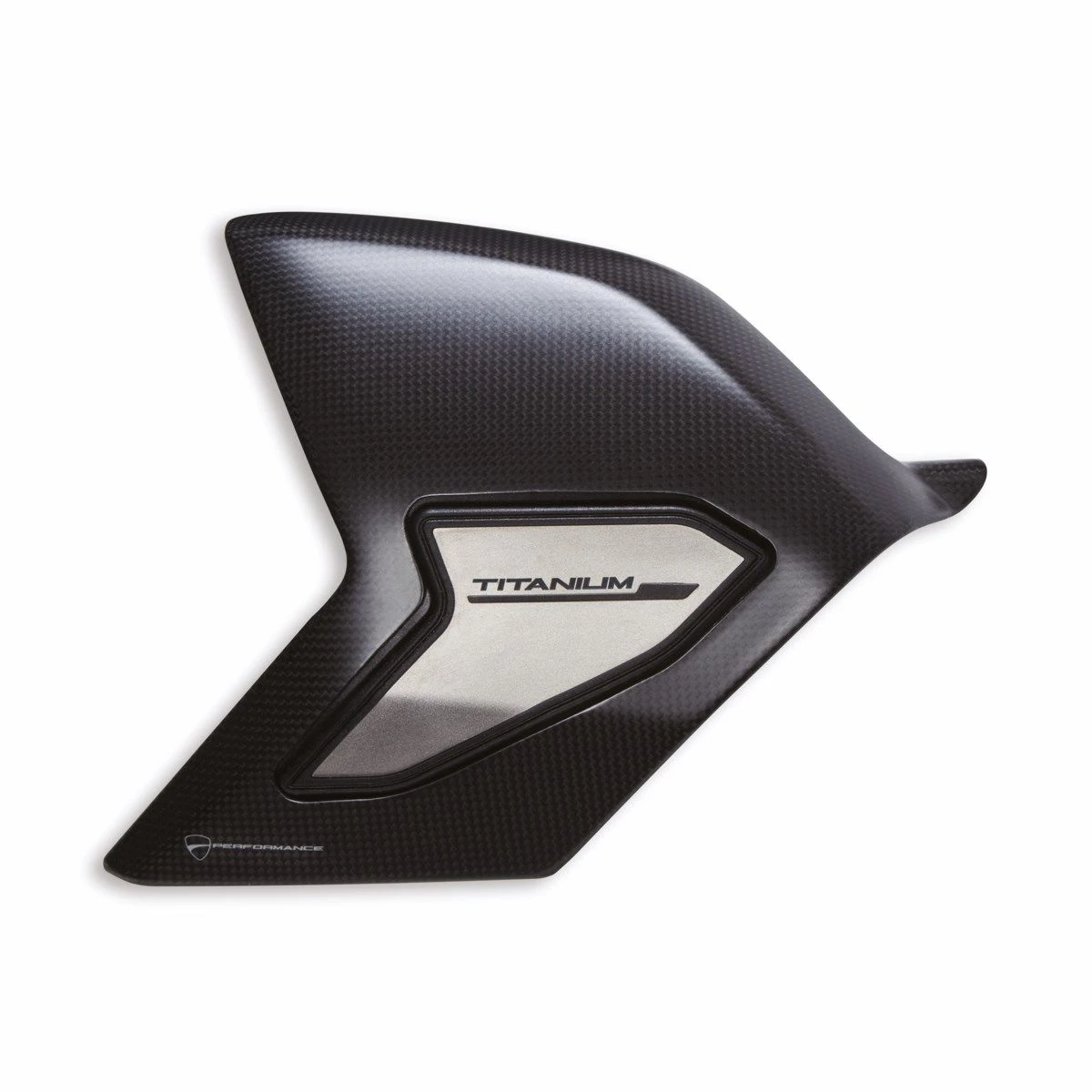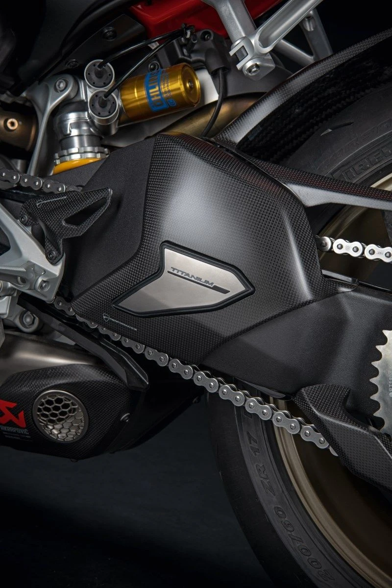 Een mooi accessoire met een uniek ontwerp dat de lichtheid van koolstofvezel combineert met de weerstand van titanium om effectieve bescherming te bieden in geval van uitglijden; het verrijkt ook het uiterlijk van de motor met een element dat de agressieve en duidelijke race-ready lijnen versterkt.