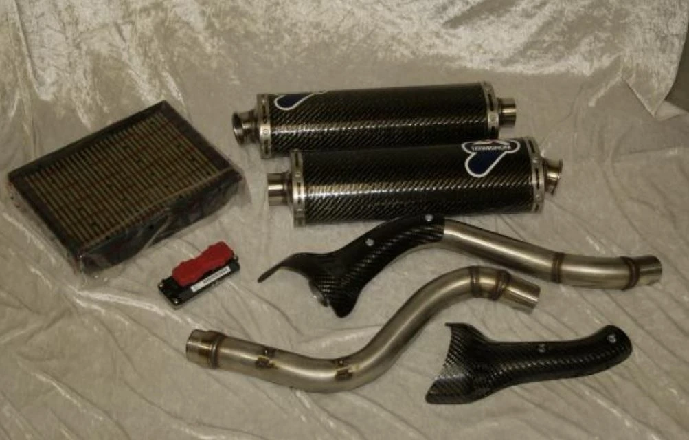Termignoni carbon slip-on dempers voor een Ducati MS4 uit 2001, inclusief race ECU en sportluchtfilter