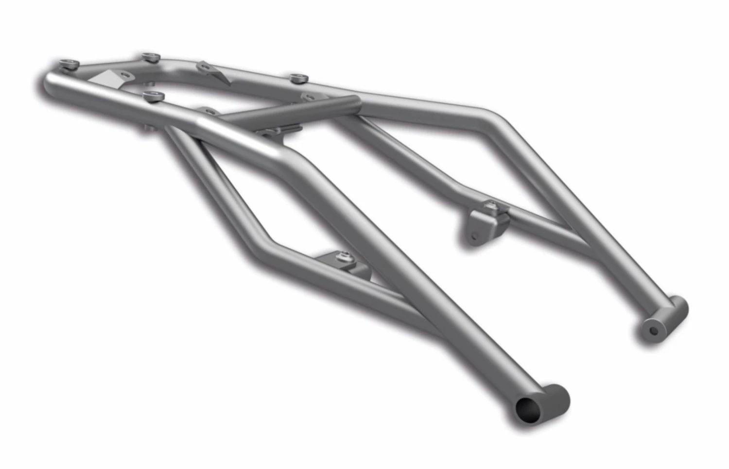 Een praktisch accessoire waarmee de aluminium topkoffer op de DesertX kan worden gemonteerd. De robuuste structuur, gemaakt van hoogwaardig roestvrij staal, biedt uitstekende ondersteuning en maximale stabiliteit voor de topkoffer, terwijl het plug & play-systeem snelle en veilige montage/demontage mogelijk maakt.