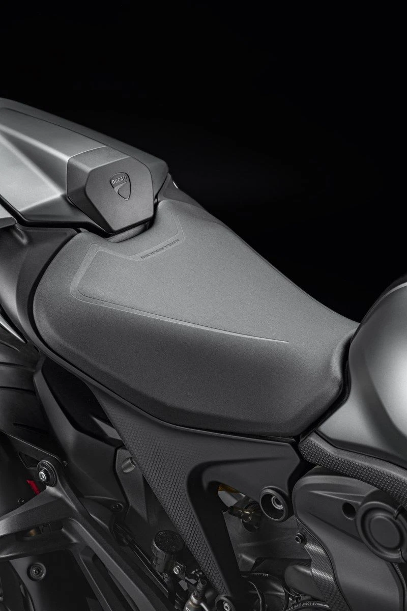 Verhoogd in hoogte, gemaakt van schuim met een hoge dichtheid en gevoerd met technische stof. Een accessoire dat is ontworpen om de ergonomie te optimaliseren, ongeacht de lengte van de rijder en om perfect bij het uiterlijk van de motor te passen.